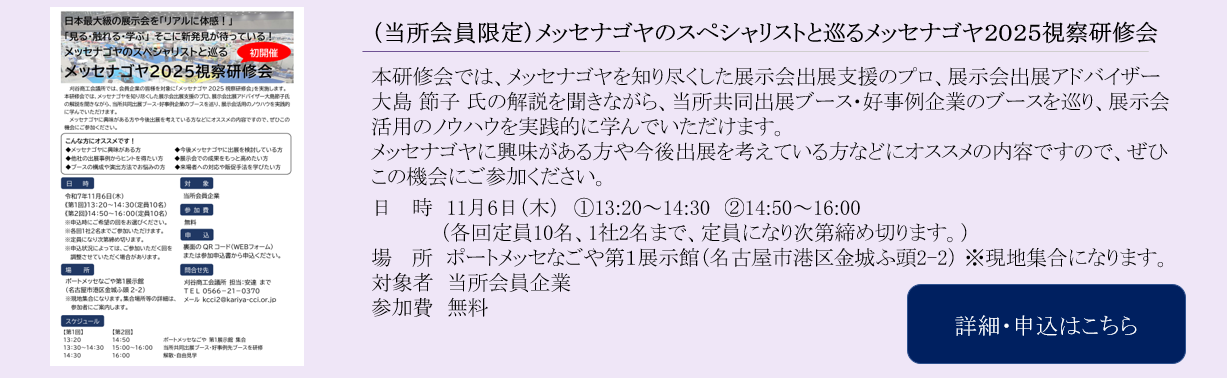 【参加者募集中】初開催!メッセナゴヤのスペシャリストと巡るメッセナゴヤ2025視察研修会(会員限定)