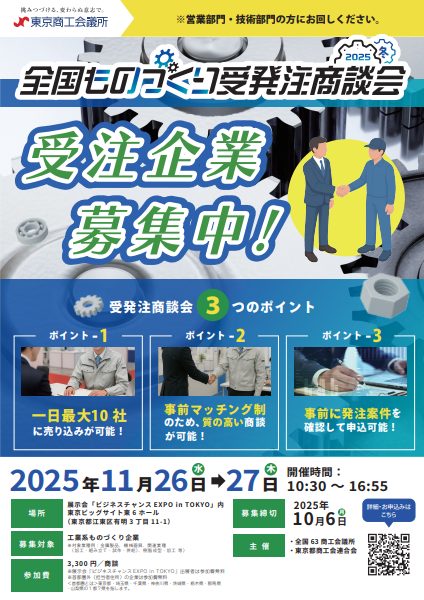 【会員限定】「全国ものづくり受発注商談会2025冬」受注企業募集のお知らせ