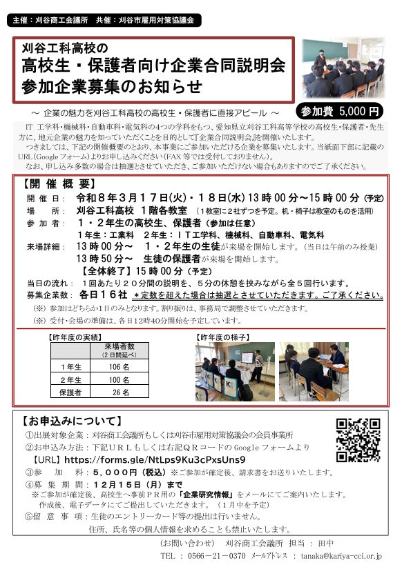 刈谷商工会議所もしくは刈谷市雇用対策協議会の会員事業所