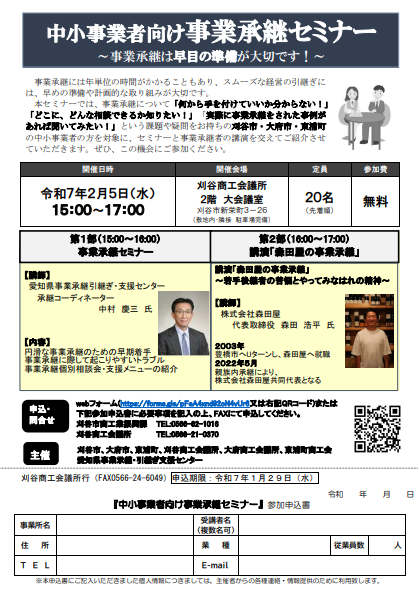 【2/5(水)開催】中小事業者向け事業承継セミナー~事業承継は早めの準備が大切です!~